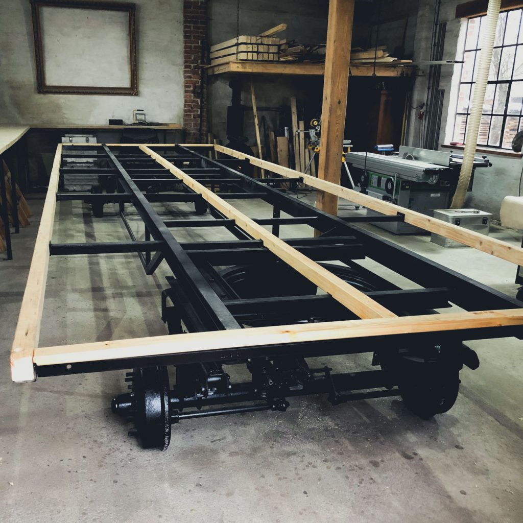 Die Wagen baue ich auf alten DDR-Fahrgestellen neu auf. Die Fahrgestelle werden entrostet, sandgestrahlt und neu lackiert. Die Bereifung, die Bremsanlage und die Fahrzeugelektrik wird dabei ebenfalls erneuert.