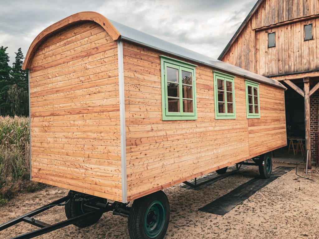 Auch wesentlich kleinere Modelle sind möglich. Fahr-gestelle von alten Dreschmaschinen eignen sich super zum Umbau als Schäferwagen oder mobile Sauna.