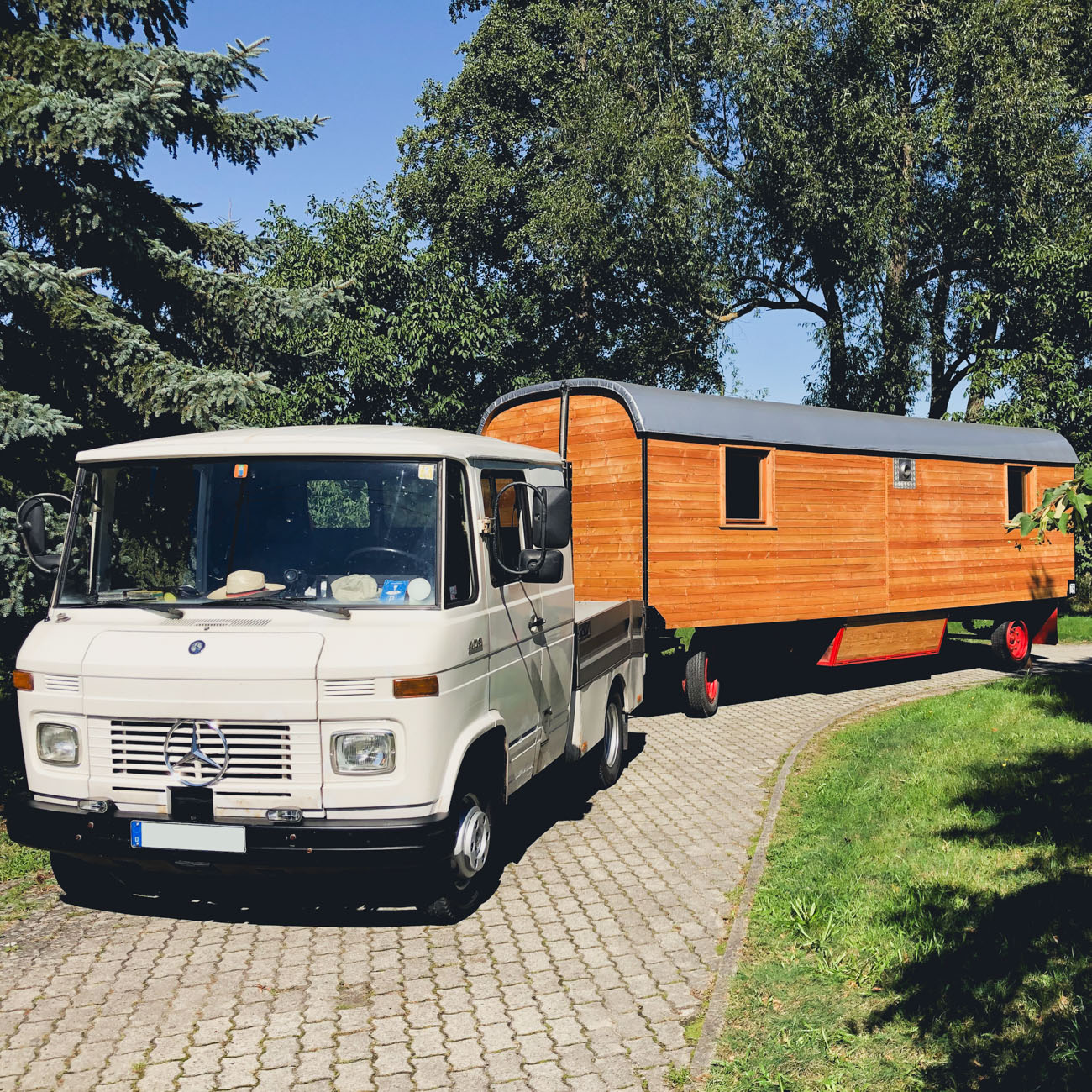 Der Zirkuswagen kann nach Fertigstellung mit einem geeigneten Zugfahrzeug, einer Spedition oder per Tieflader überführt werden. Die Schäferwagen passen auf einen Autotrailer.